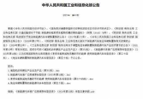 《免征车辆购置税的新能源汽车车型目录》