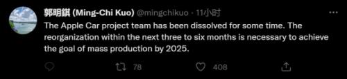 近日,天风国际分析师郭明Z在推特上发文称,苹果的Apple Car团队已经解散了一段时间,苹果如果想在2025年量产Apple Car,就需要在接下来的三到六个月内对团队进行重组。一时间,关于苹果造车,关于Apple Car,都成了一团迷雾。
