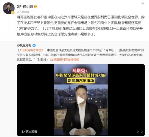 何小鹏评论马斯克赞“中国电动汽车领先世界”