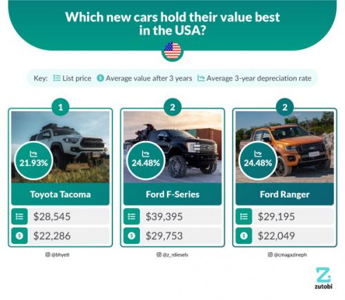 对于经常换车的消费者来说,汽车的保值率就成为他们购车的一个重要参考指标。近日,Zutobi公布的一项分析显示,在当前的美国市场,如果你想让你的车有着更高的保值率,那么皮卡绝对是一个值得考虑的车辆类型。