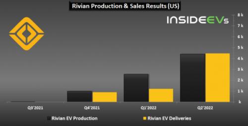 近日,美国造车新势力Rivian公布了2022年第二季度电动汽车生产和销售业绩。相比上一季度,该公司在产能和销量上都有着明显提升。