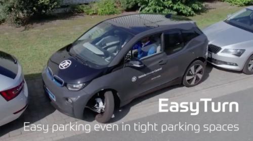 在采埃孚的一些演示视频中,可以看到配备EasyTurn的宝马i3(旧款)进行平行停车甚至在路中间进行单向U形转弯是一件多么容易的事情。它甚至可以让车辆尾部几乎保持位置不变的前提下在原地转圈。在一个道路狭窄的城市里,如此灵活的前轮所带来的极小转弯半径,将能够大幅提升驾驶便利性。