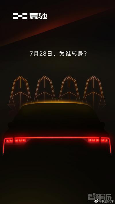“是谁?即将闪亮登场?是谁?为认真执着转身?7月28日,TA的出场,等你见证~”据智车派了解,近日爱驰汽车发布预热微博,宣布新车即将到来。此外,官方还放出了一张海报,海报中的新车采用贯穿式尾灯设计,和爱驰U6极为相似。