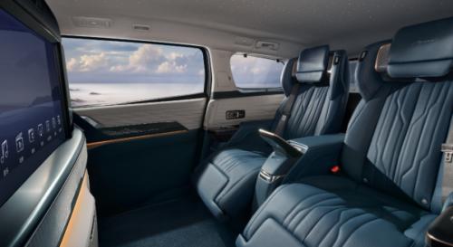 内饰方面,别克世纪内舱侧围的装饰件首次采用真木材质,并在门饰板、座椅和侧围多处采用麦穗纹绗缝纹理,尽显奢华感。新车还配备四辐式方向盘、曲面联屏等,车内还设计有星空顶。而四座版本车型,则在第二排配备了32英寸可升降智能屏、拥有智能交互体验的160度云感座椅、专为后排聆听体验打造的Bose Executive Edition悦尊音响系统。另外,二排座椅中央扶手区还集成了8英寸智控屏,配备一颗独立的高通骁龙8155芯片,可对氛围灯、星空顶、后座空调等进行调节。