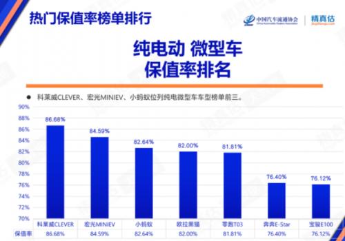 而在电动车方面,微型电动车市场又迎来“新人”,保值率第一的变成了上汽荣威科莱威CLEVER,宏光MINIEV则排在第二。