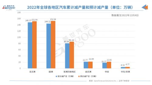 据外媒报道,汽车行业数据预测公司AutoForecast Solutions(简称AFS)公布最新数据:截至12月4日,由于芯片短缺,今年全球汽车市场累计减产汽车数量高达约418.6万。AFS表示,欧洲和亚洲地区遭受的冲击最大,近期大部分减产都来自这两个地区。其还预计,由于芯片供应不足,12月全球各地区还有可能再减产20多万辆汽车,今年全球汽车市场累计减产量将攀升至439.3万辆。