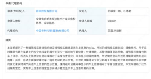 1月16日,智车派注意到,蔚来控股有限公司一项有关AR眼镜的全新专利获得了授权。企查查专利摘要的信息显示,所述的增强现实眼包括:摄像单元,用于实时捕获布置在车辆上的多个光线发射器中的至少一部分的平面位置;处理模块,其提供增强显示图像,增强显示图像包括车上信息,所述车上信息旨在显示成相对于车身位置固定;带有显示功能的镜片,所述镜片显示所述处理模块提供的显示图像;其中,所述处理模块确定车上信息的初始显示位置,所述处理模块至少部分地基于所捕获的光线发射器的平面位置的变化来实时调节所述车上信息的显示位置,使得在所述镜片中显示的车上信息相对于车身位置固定。