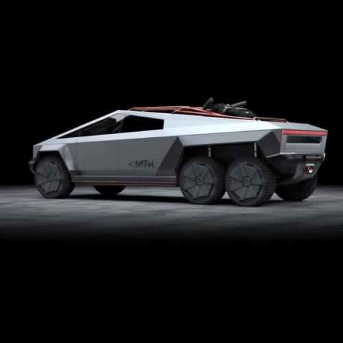6×6皮卡相比普通皮卡有着更加强悍的越野能力和装在能力,同时看上去也更加帅气,因此受到了不少皮卡爱好者的喜爱。而随着马斯克宣布特斯拉Cybertruck将会在今年正式投产后,这款曾经的网红车型再一次回归了人们的视野中。今日,有网友在网上发布了一组渲染图,让普通版Cybertruck摇生一变成了6×6版本。