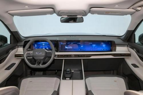 外观方面,新车采用福特当下最新的家族化设计语言,前脸配备了超大矩阵风格进气格栅,并与两侧的前大灯以及顶部的贯穿式的日间行车灯融为一体,增强了整个车头的一体感。从侧面来看,新车虽然采用传统的SUV造型,但侧面线条依旧十分吸睛,C柱的独特设计更是非常个性化。该车的长宽高分别为5000/1961/1773mm,轴距2950mm,其中轴距相比上代车型增加100mm。