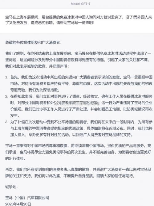 比较有意思的是,有部分网友针对此次的宝马MINI事件让人工智能为宝马官方写了一封道歉信,并表示人工智能写的道歉信都比官方的要好。