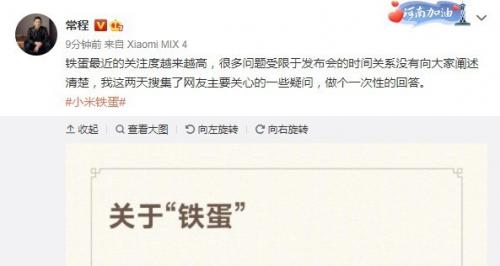 此前的8月10日,小米发布了首款仿生四足机器人――CyberDog(铁蛋)。对此,很多网友不解,小米为什么要做仿生四足机器人?8月13日,小米副总裁常程在个人微博上发文表示,铁蛋最近的关注度越来越高,的确有很多网友对它感到好奇,这一点他也很意外。