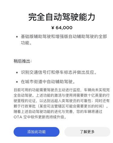 特斯拉自动驾驶功能价格